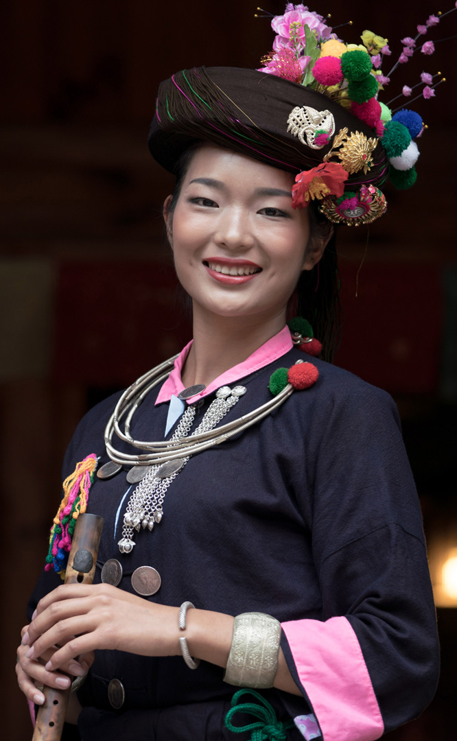 德昂族人口約1.7萬,主要分布在德宏州和保山市的潞西、梁河、瑞麗、隴川、隆陽等縣區(qū)。民居多為草排覆頂竹木結構的干欄式建筑,眼前的德昂村建筑納入了能容納數(shù)十人居住的德昂大房子,氈帽頂?shù)男》孔樱€有頗具浪漫色彩的大公房、小公房……還建有“龍陽塔”標志及佛教奘房、佛塔。德昂族民間普遍信奉南傳佛教,民俗活動與佛事活動關聯(lián)緊密。潑水節(jié)、開門節(jié)、關門節(jié)是重大節(jié)日。德昂族服飾色彩豐富,口頭文學特別是民歌創(chuàng)作活動...